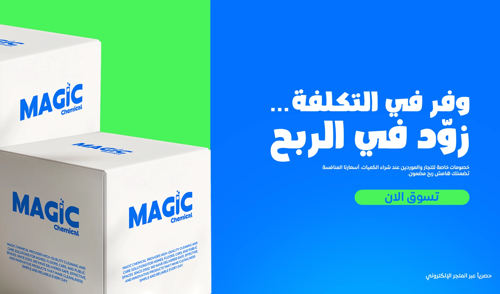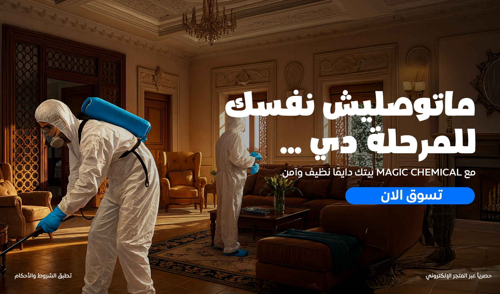 لا تفوت الفرصة! احصل على منتجات ماجيك كيميكال الأصلية للتنظيف والتعقيم والتلميع لمنزلك أو عملك بأفضل جودة وبأسعار لا تقارن.